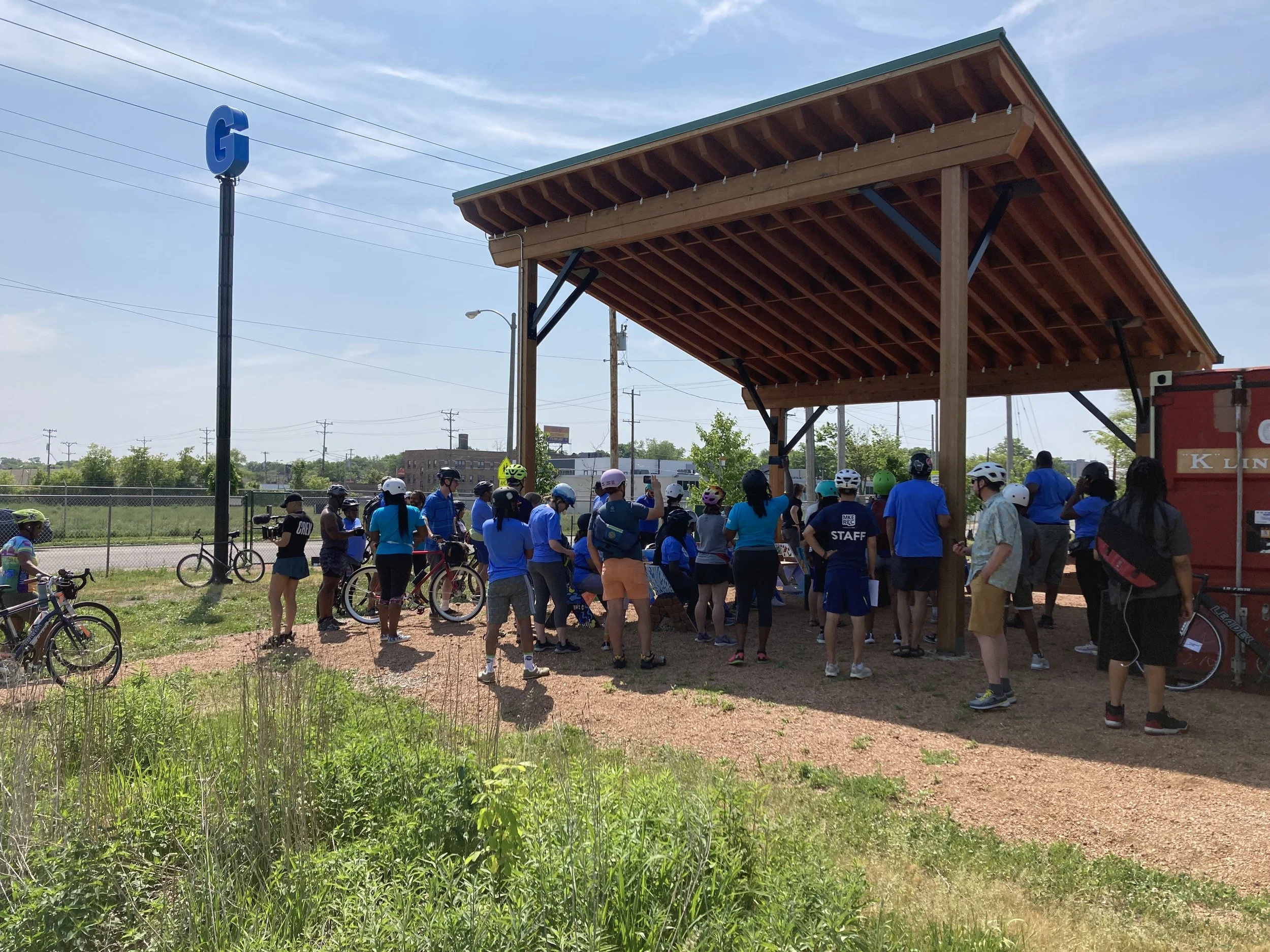 A new community park where Melvina where it meets Hopkins has been supported by years of conversations and direction by neighbors organized by Yvonne McCaskill of Century City Triangle Neighborhood Association, will be Melvina Park, an enhanced space integrating green infrastructure designed to manage 120,000 gallons of stormwater—the equivalent of five blue whales. Melvina Park will also feature new play and gathering spaces, art, and the illuminated “C” WaterMarker.